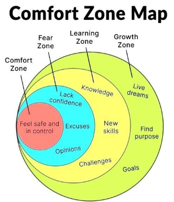 Stepping beyond what feels safe, pushing boundaries, exploring new territories is like figuring out mental challenges and fears. In today's modern world, where convenience often keeps young people stuck. More and more they are realizing how important it's for personal growth to try and learn new things. Studies show that people are curious about what happens when they step into the unknown. Just as physical activity can make them feel better mentally, confronting unfamiliar situations can change the way young people see things and make them stronger internally. If youngsters don't know much about mental health, it's like they are not sure what's outside their comfort zone.