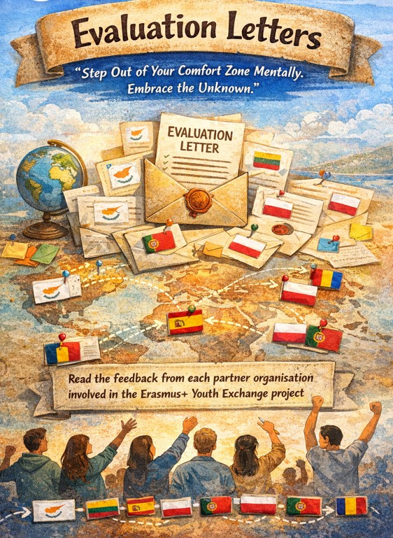 This page presents the evaluation letters provided by the partner organisations involved in the Erasmus+ Youth Exchange "Step Out of Your Comfort Zone Mentally. Embrace the Unknown." These evaluations reflect the partners' perspectives on the project's implementation, methodology, cooperation, and overall impact on young people and youth workers.